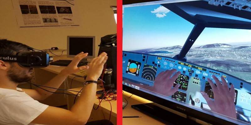 VR Flight Simulator with Hand-tracking Technology and Haptics